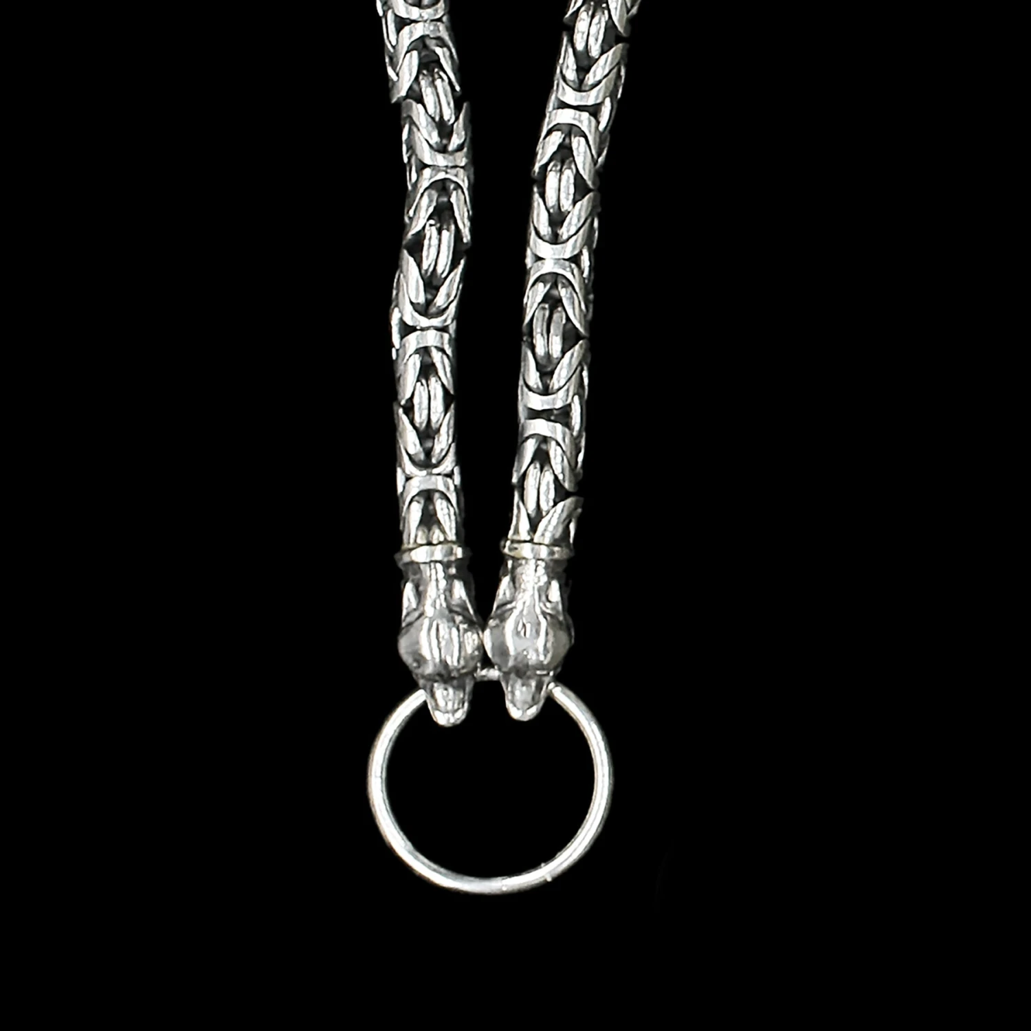 8mm Thick Silver King Chain Thors Hammer Necklace – Ferocious Wolf Heads