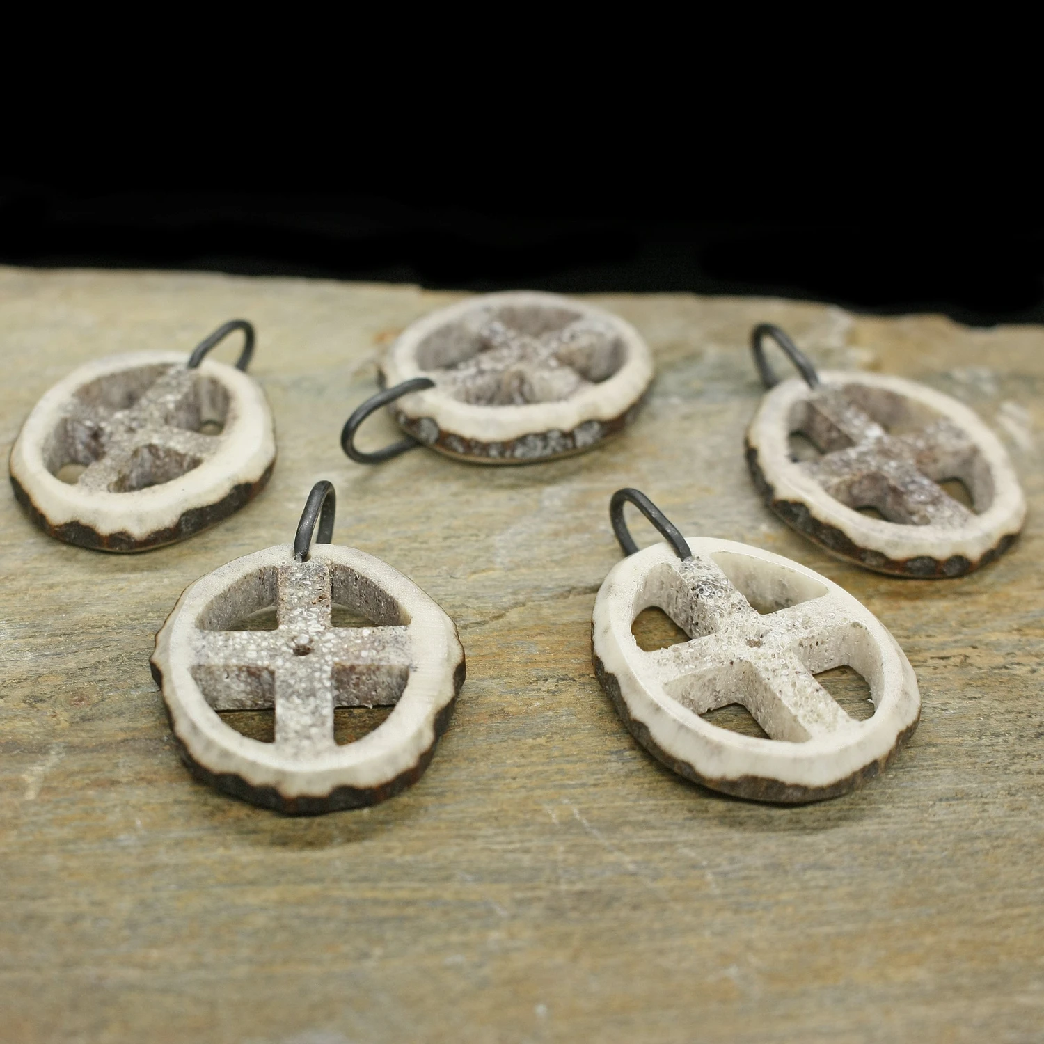 Hand-Carved Red Deer Antler Round into the Shape of Odin’s Sun Cross.