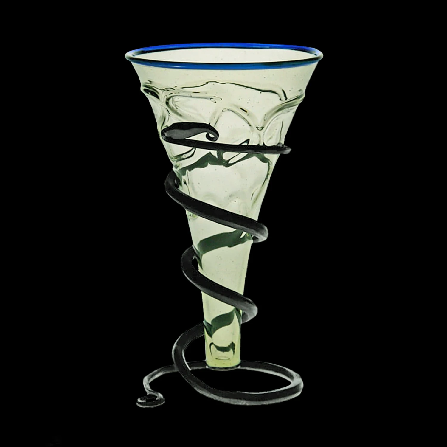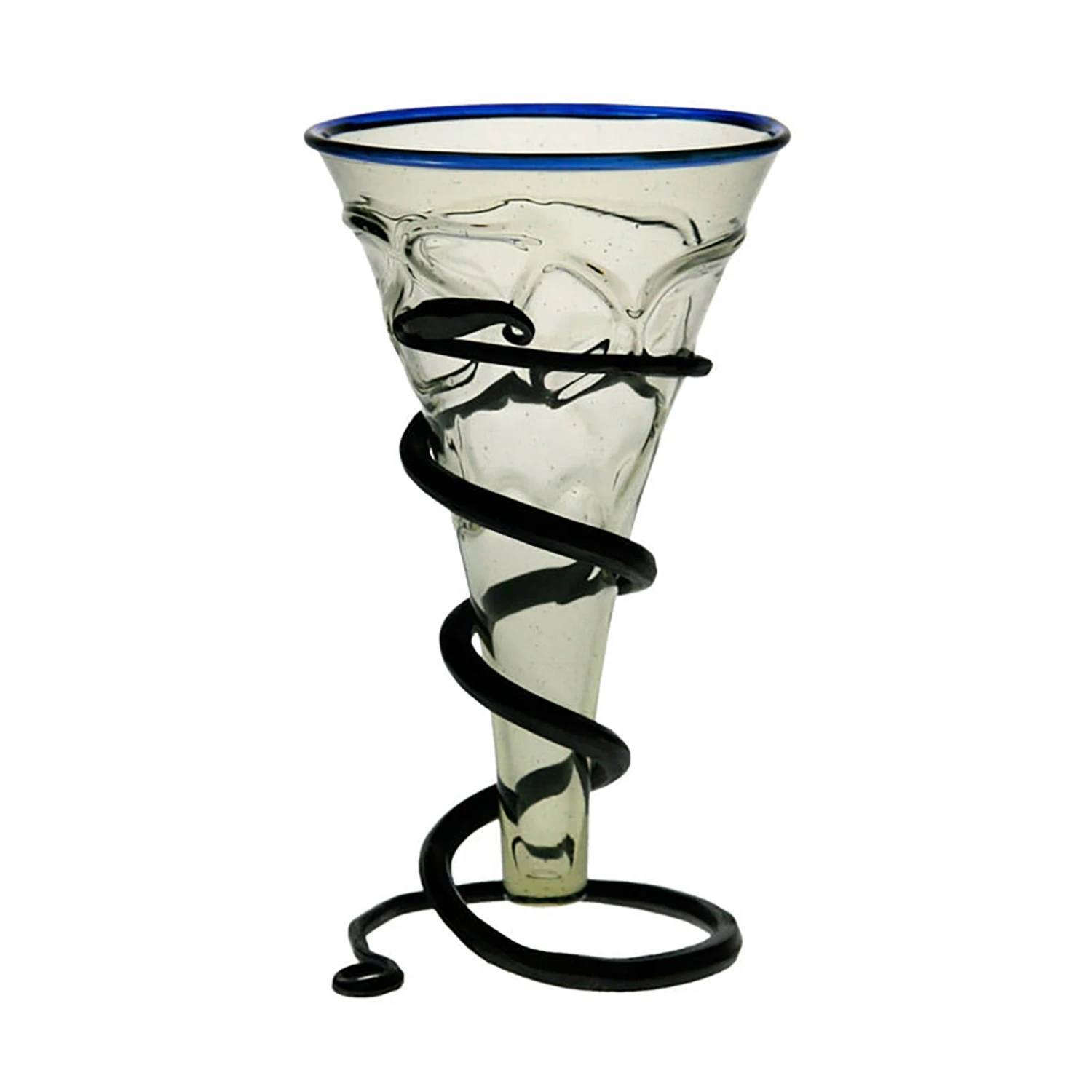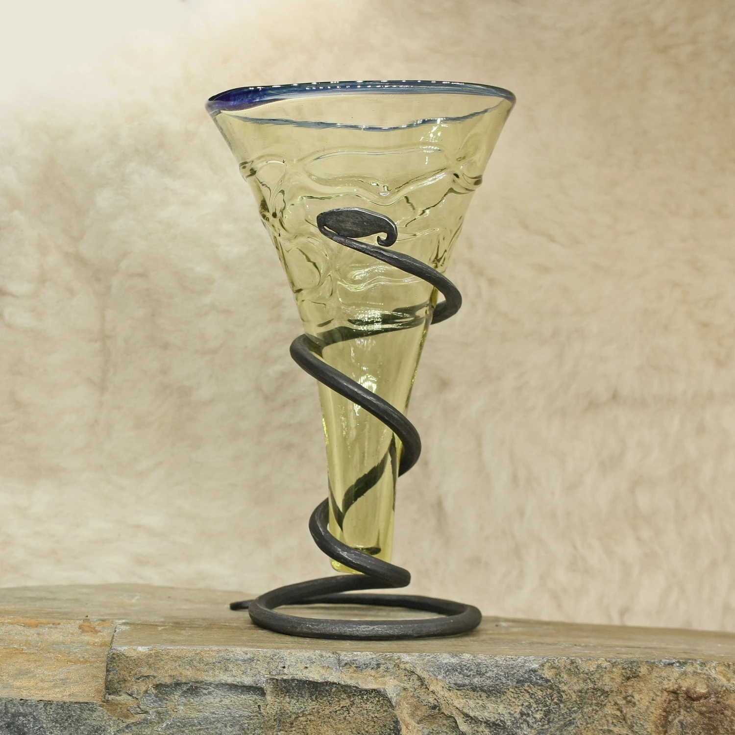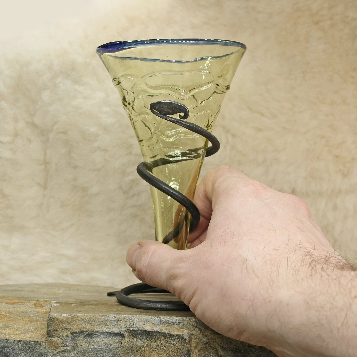Handmade Glass Viking Beaker with Hand-Forged Iron Serpent Stand.