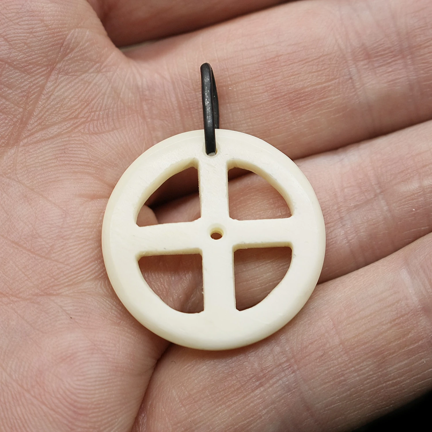 Handmade Cow Bone Viking Pendant, Carved Into Odin’s Sun Cross.