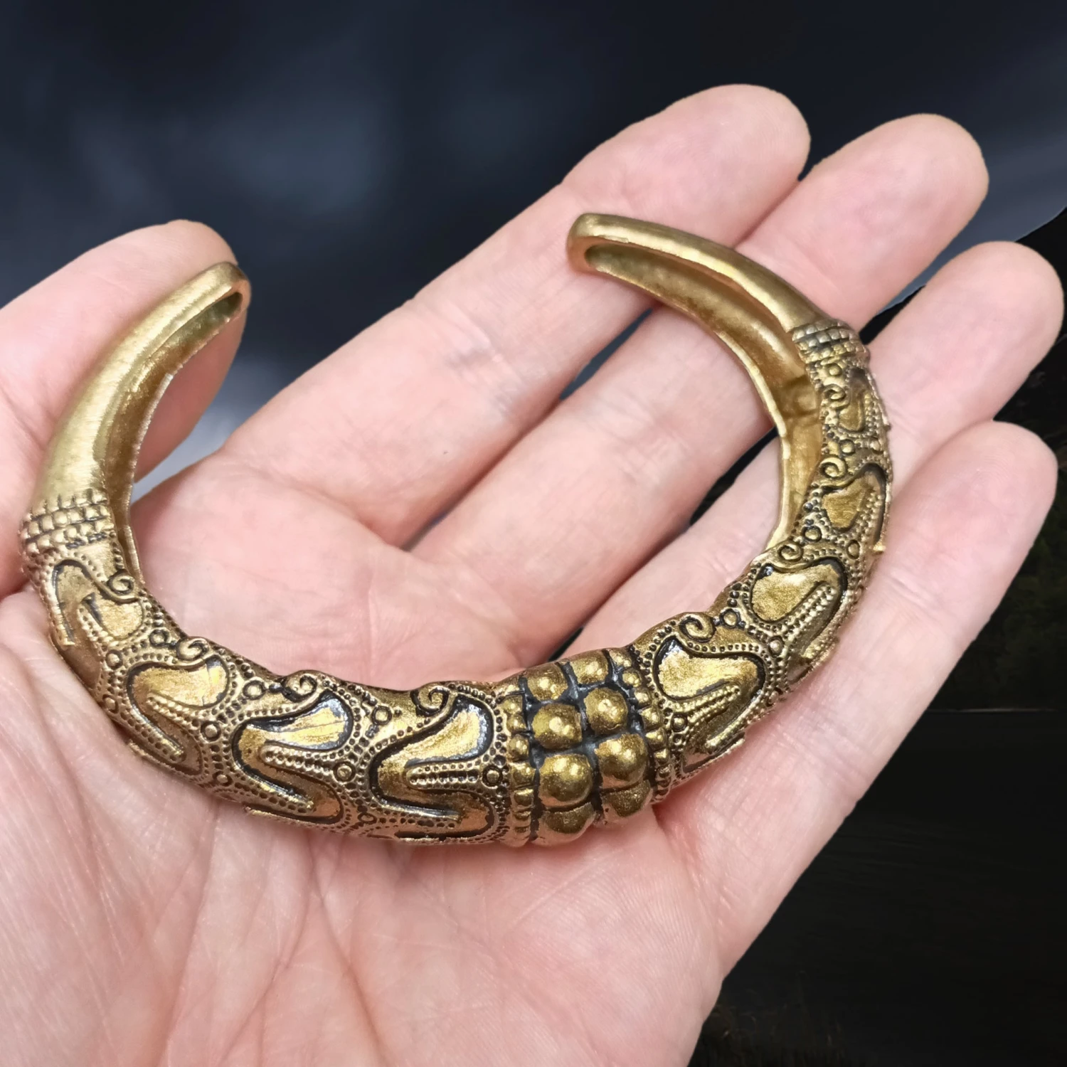 Viking bracelets have been found all over Europe and this one is from Orupgård, Falster, Denmark; which dates back to the 10th century. The original is in the national museum of Denmark in Copenhagen.