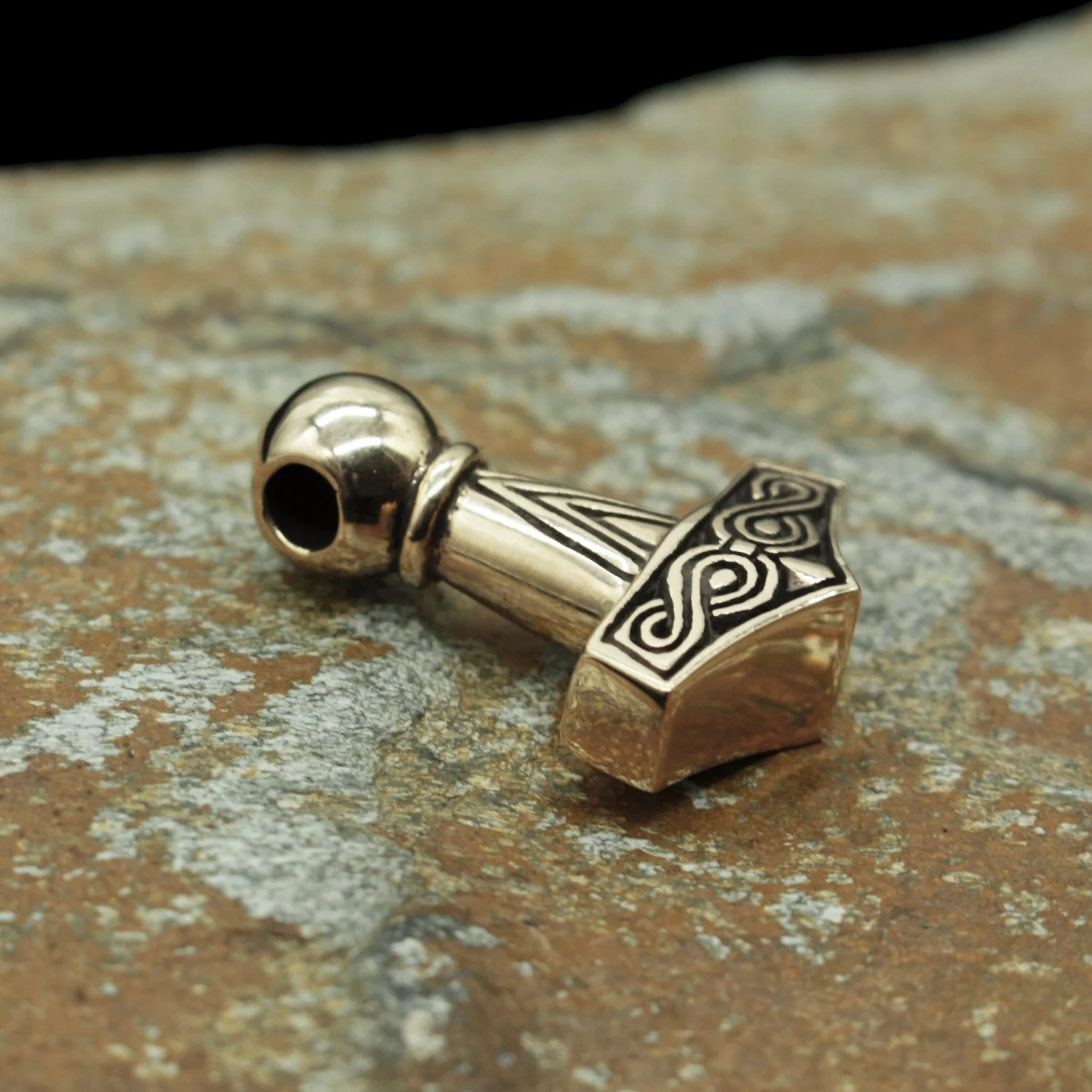 This Thor’s hammer is a replica of a recent find in Lolland, Denmark and is the only Thor’s hammer found that has a runic inscription.
