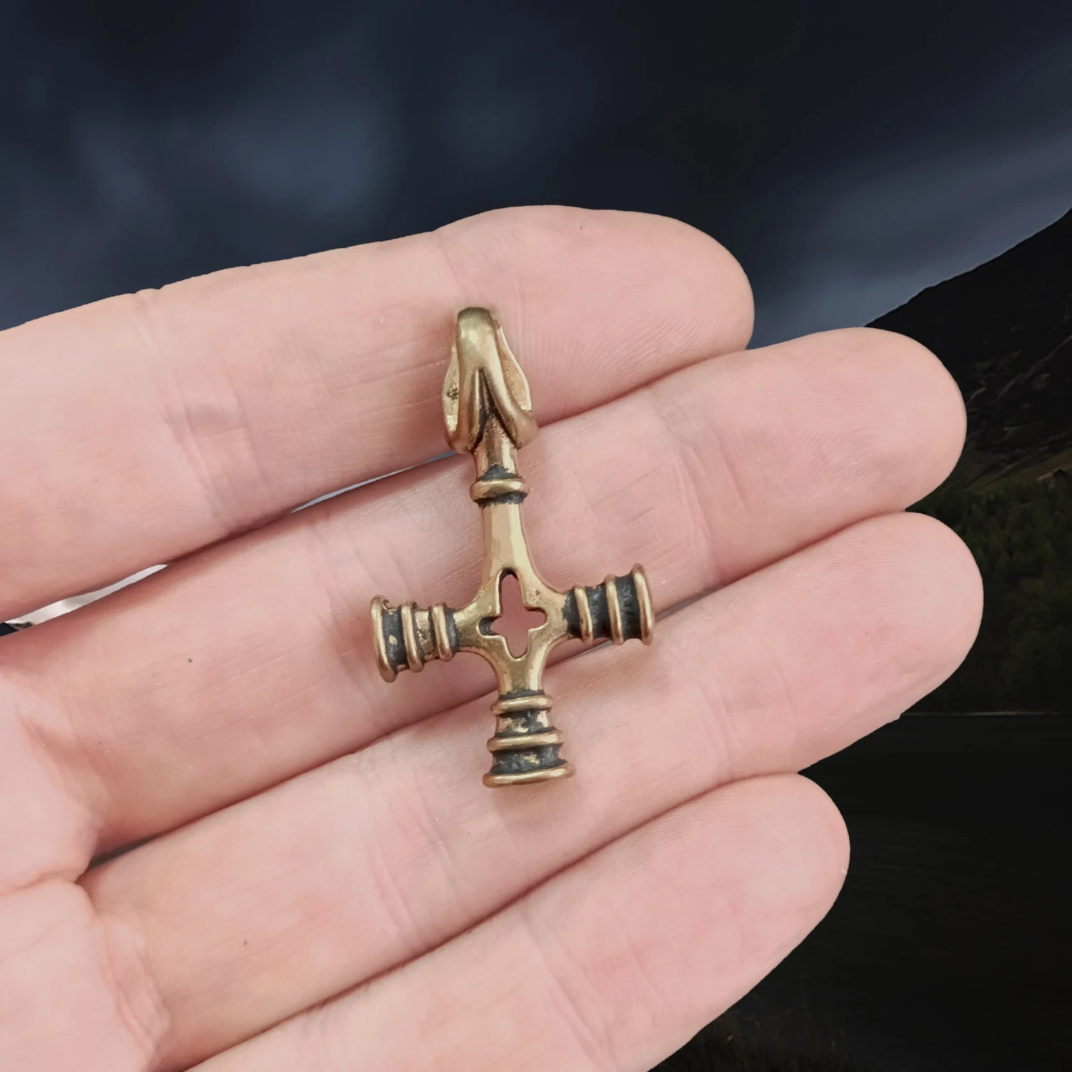 Small Bronze Replica of the Original Icelandic Thor’s Hammer Cross Pendant, from Foss, Iceland – 11th Century.
