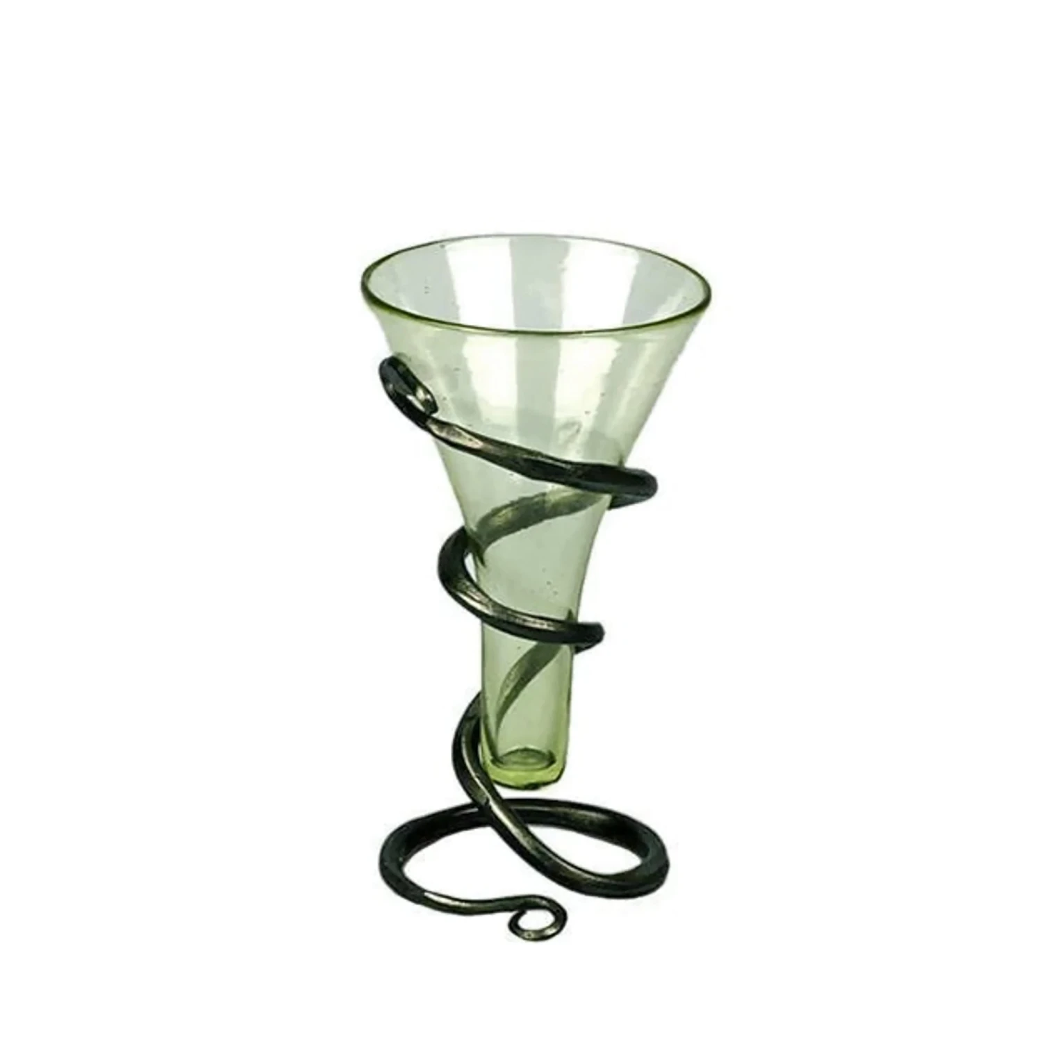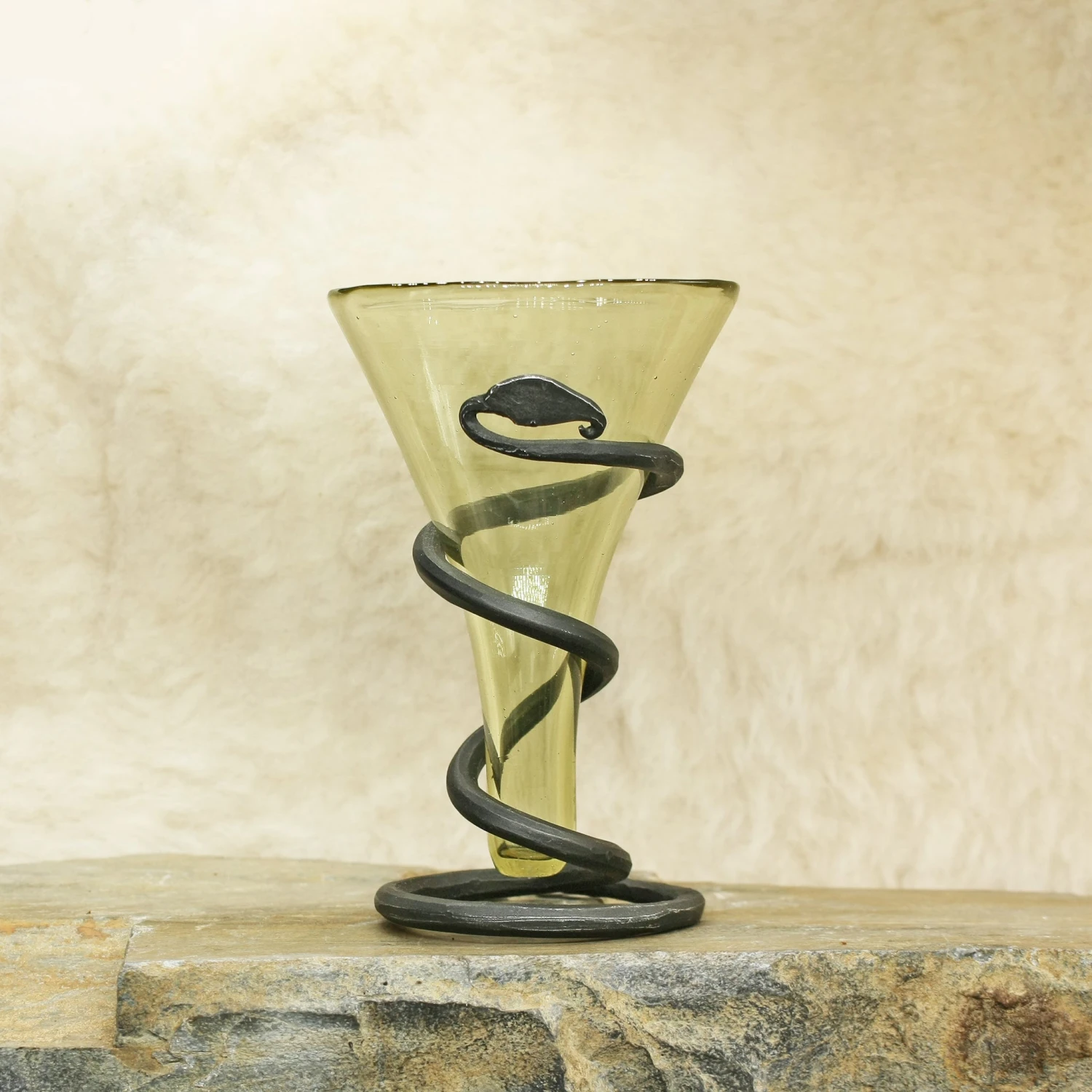 Handmade mead glass with hand-forged iron serpent stand.