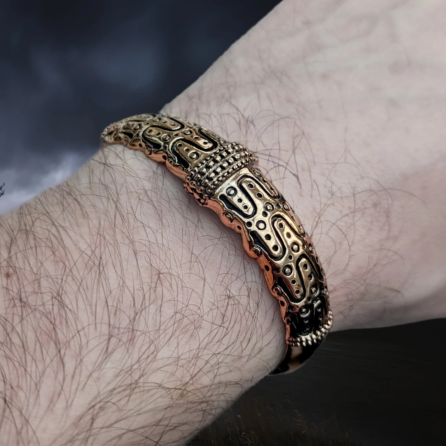 – A beautiful cast replica of a Viking bracelet in a rich, golden bronze.
