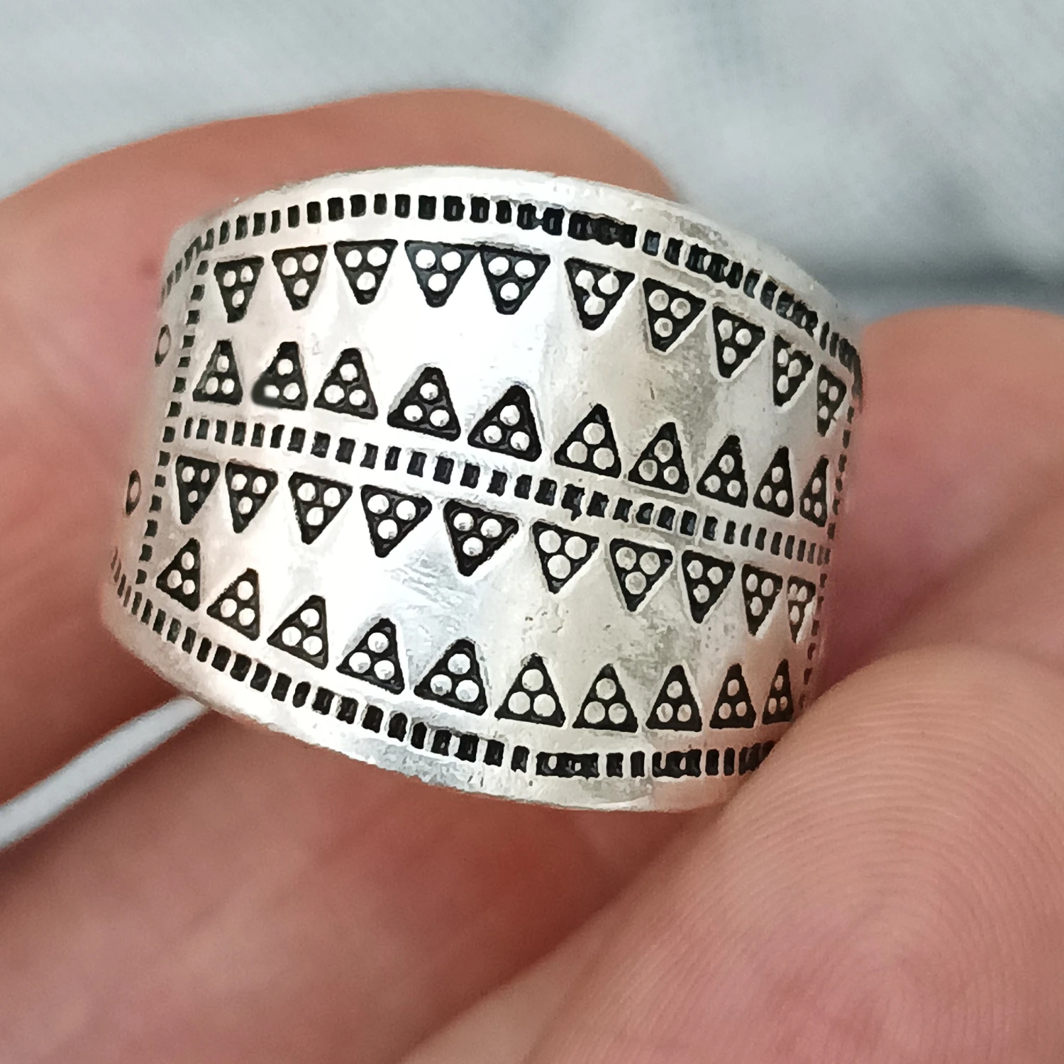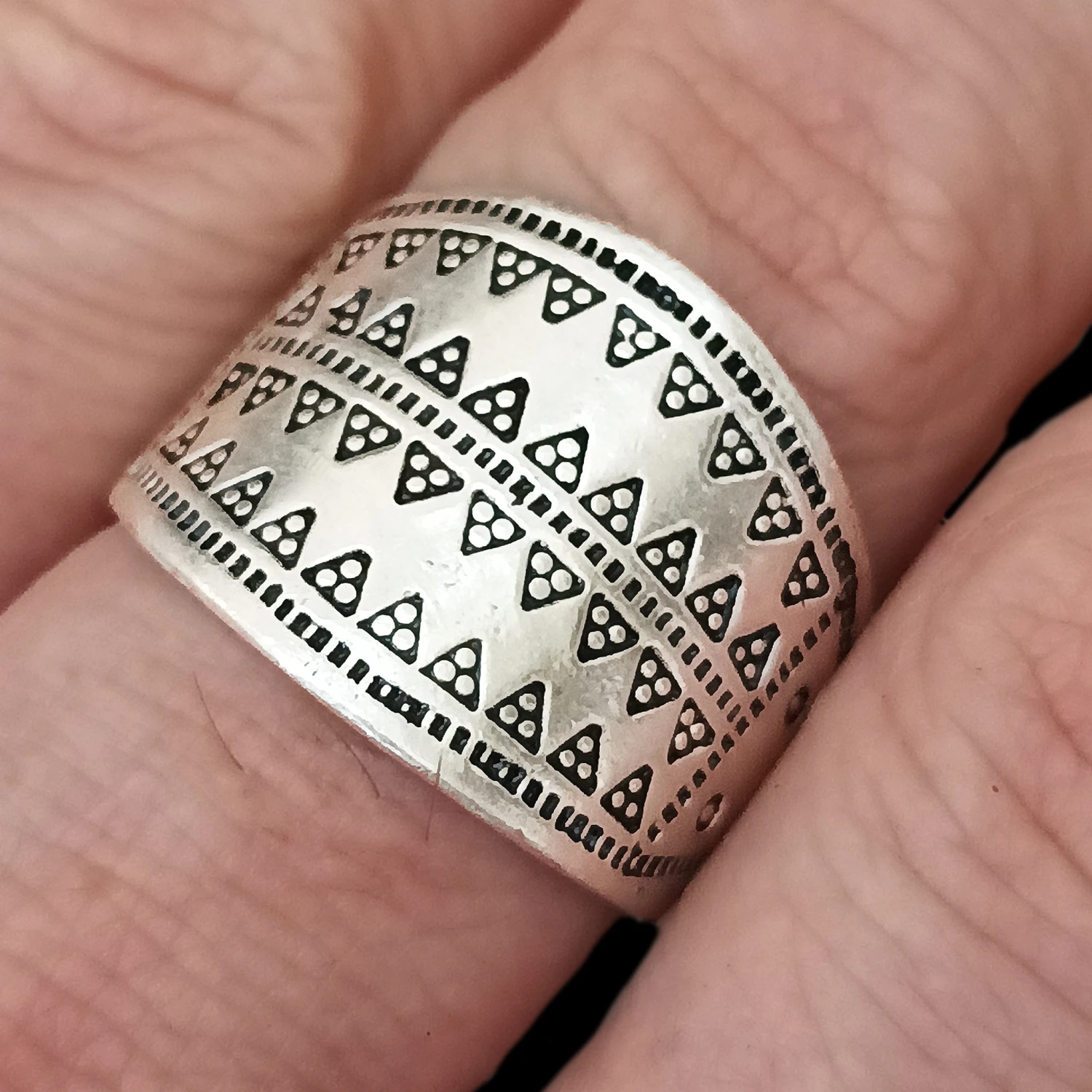 Silver-Plated Replica Ring with Embossed Viking Design.