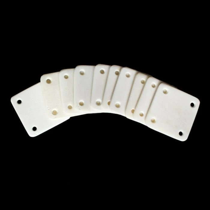 – Made from flattened pieces of cow bone with holes drilled in each corner.