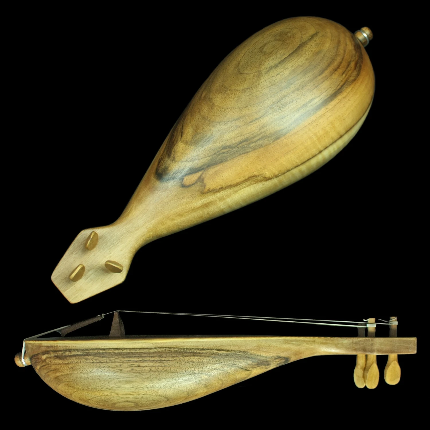 The Rebec was originally called a Rubebe and was thought to have developed from the similar Arabic Rabāb. The Rebec is distinctive with its pair-shaped body and that the body is made from a single pieces of wood.