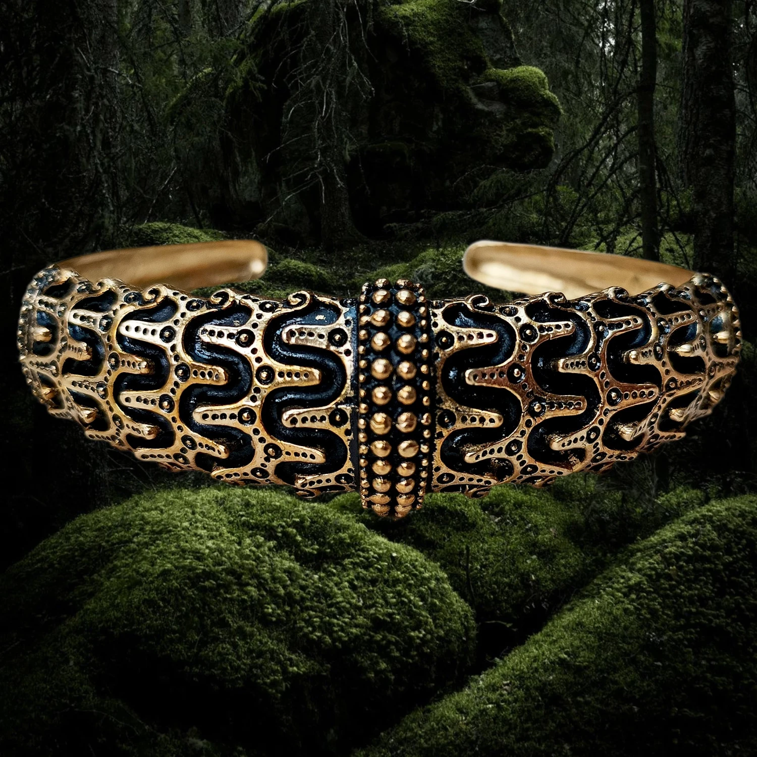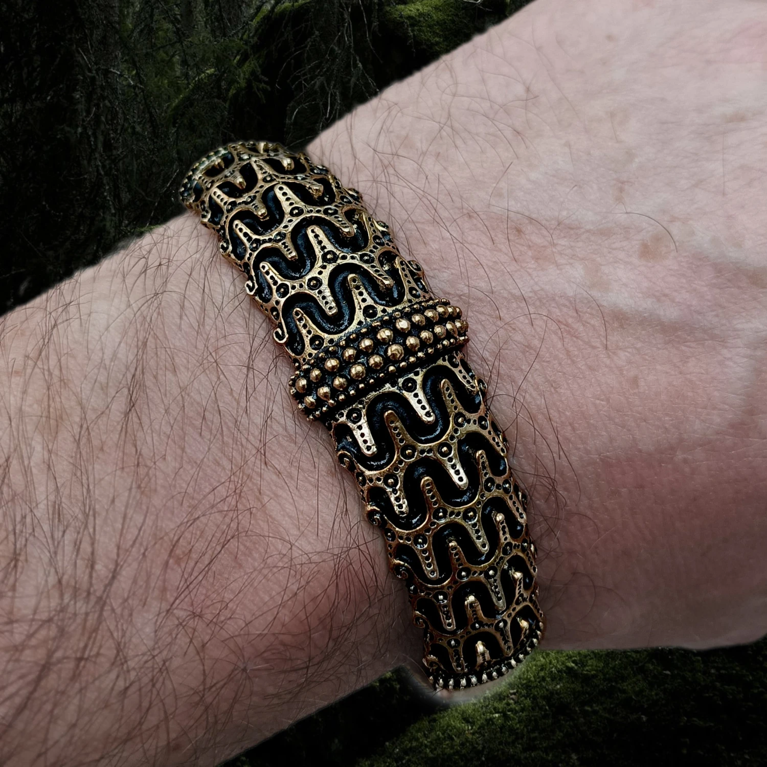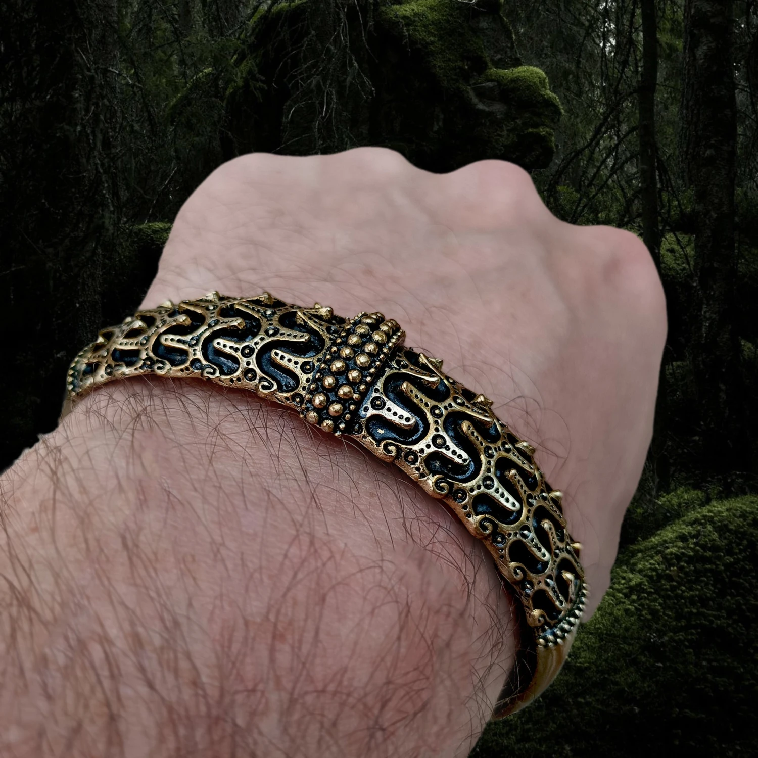 Viking bracelets have been found all over Europe and this one is from Orupgård, Falster, Denmark; which dates back to the 10th century. The original is in the national museum of Denmark in Copenhagen.