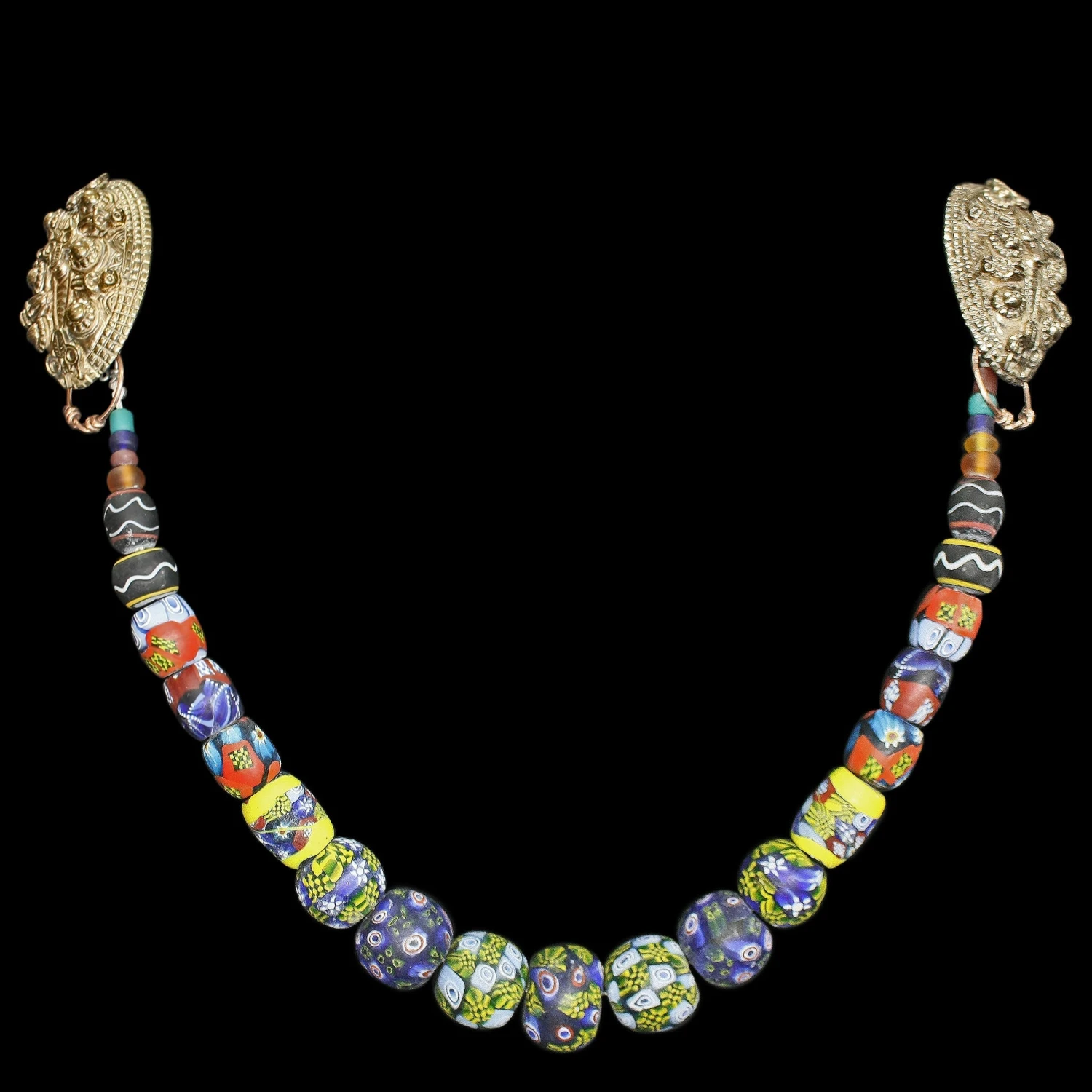 Large Replica Viking Necklace of Handmade Glass Bead Replicas from Eidem, Norway.