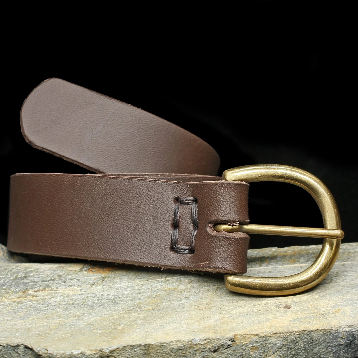 Hand-Stitched Extra Long Leather Belt with Brass Buckle in a Choice of Widths and Colours.