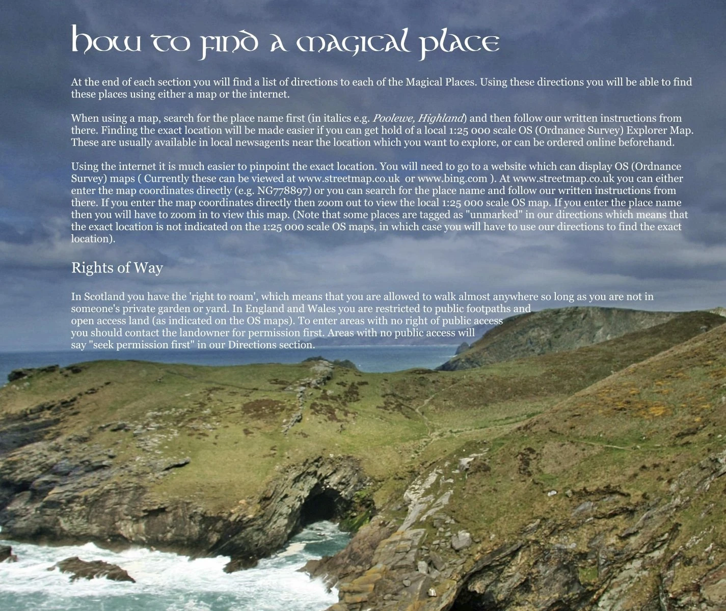 Enchanted Forests, Haunted Waters, Magic Caves, Sacred Springs, Holy Wells, Mystic Mountains, Fairy Hills and places of Magic and Miracles in the landscape of Scotland, Wales, England and Cornwall.