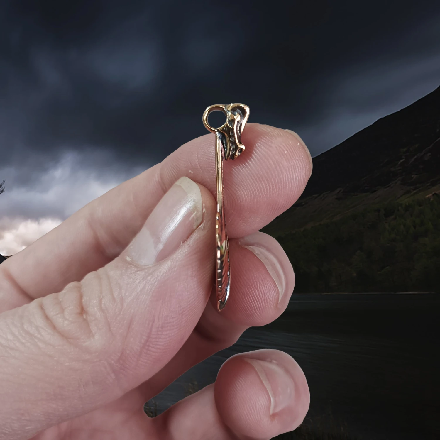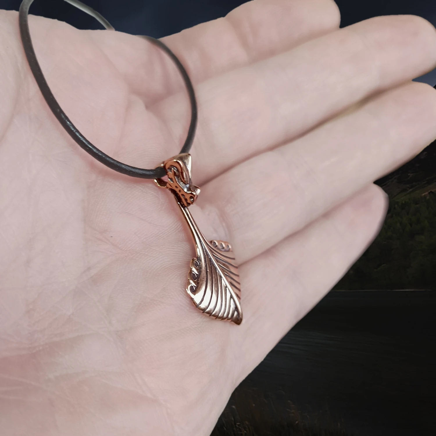 Replica Oseberg Viking Ship Pendant in Bronze.