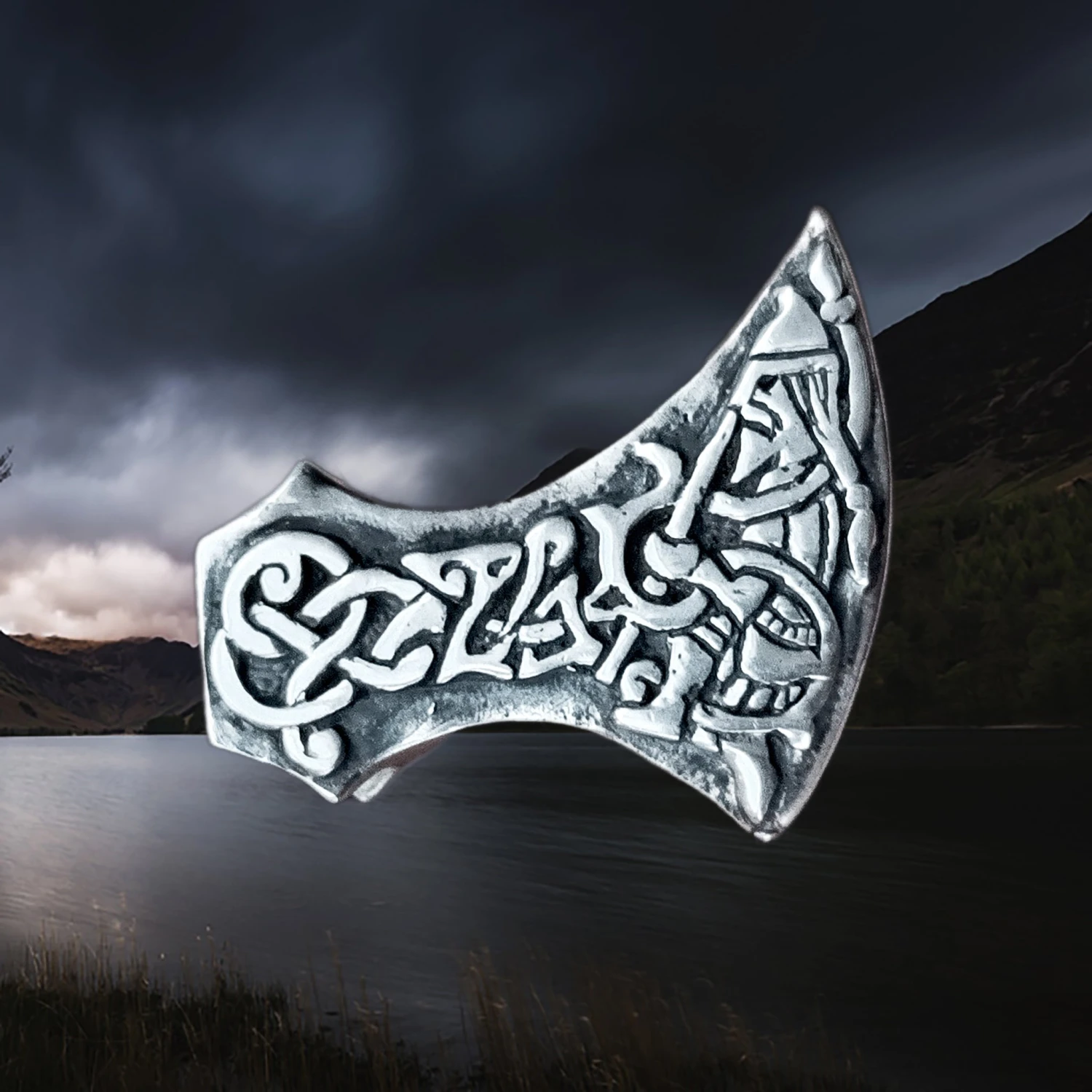 Sterling Silver Viking Axe Head Pendant with Viking Knotwork Design by Kai Uwe Faust.