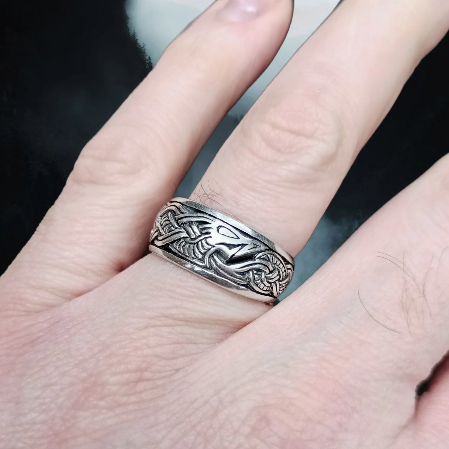 – 925 sterling silver ring with Ringerike dragon design in 2 sizes.