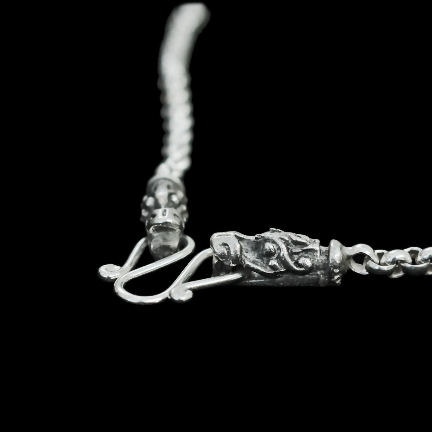 Sterling Silver Viking Necklace with Gotlandic Dragon Heads & Anchor Chain.