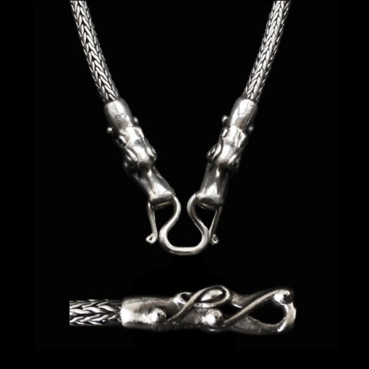 – Cast 925 sterling silver heads with handmade sterling silver snake chain.