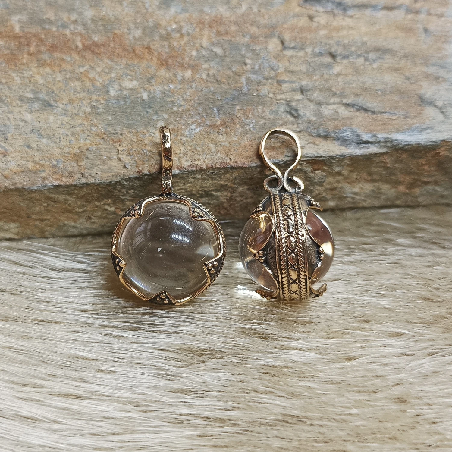 Bronze Gotlandic Filigree Pendant with Moveable Crystal Ball.