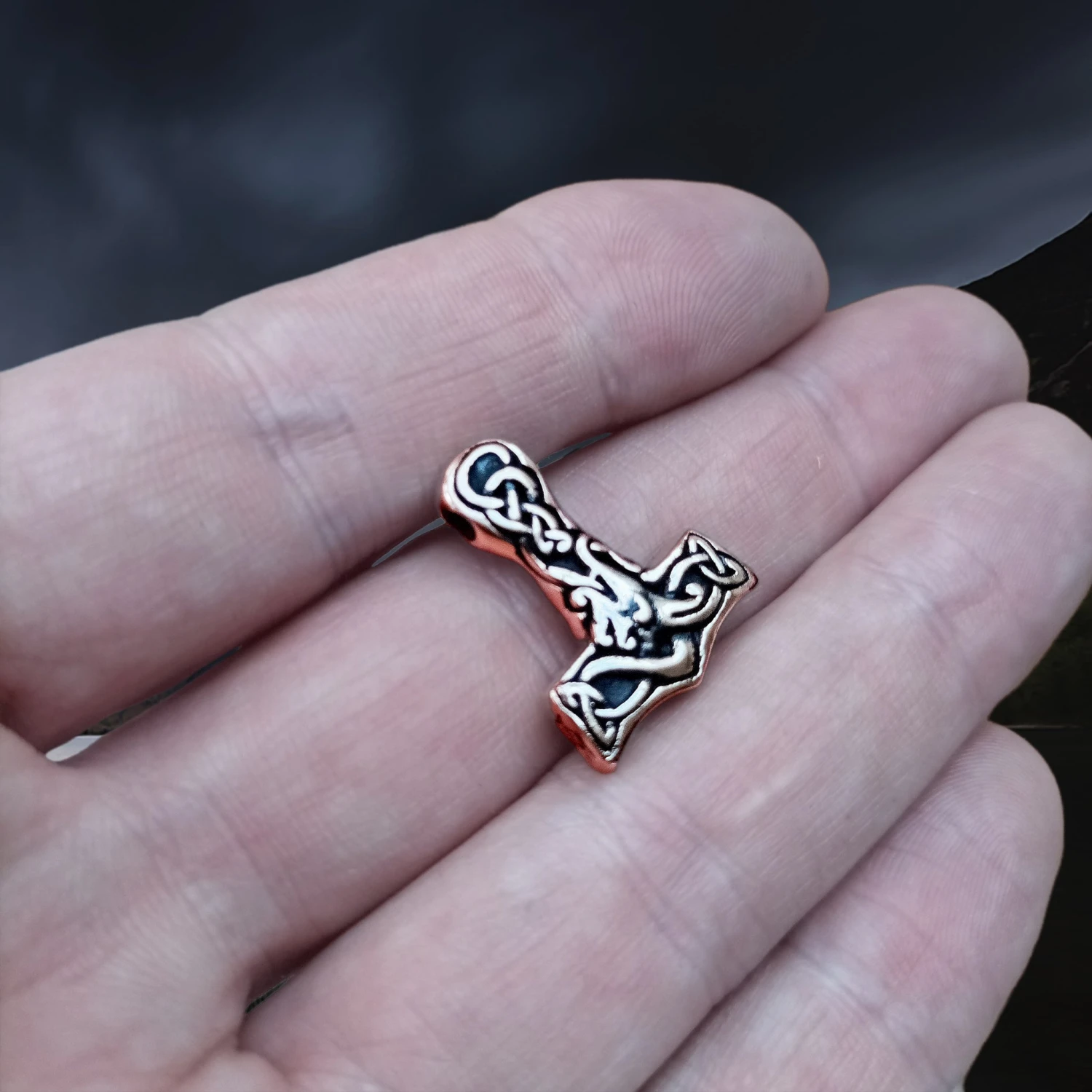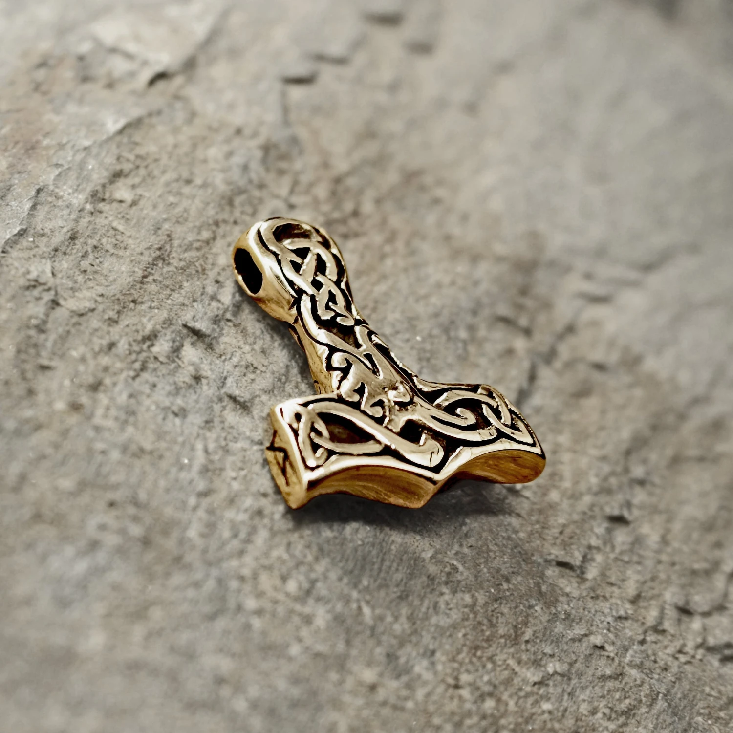Smaller Version of Our Interlace Viking Thor’s Hammer With Intricate Designs on Both Sides.