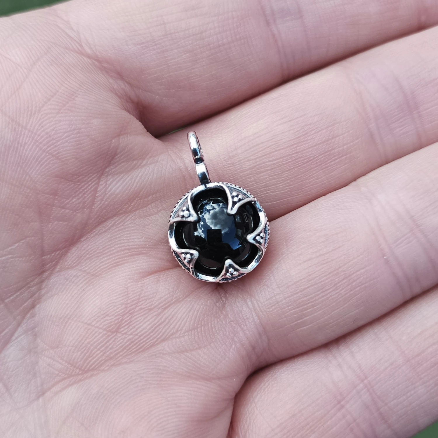 Gotlandic Silver Pendant with 10mm (0.4 inch) Onyx Ball.