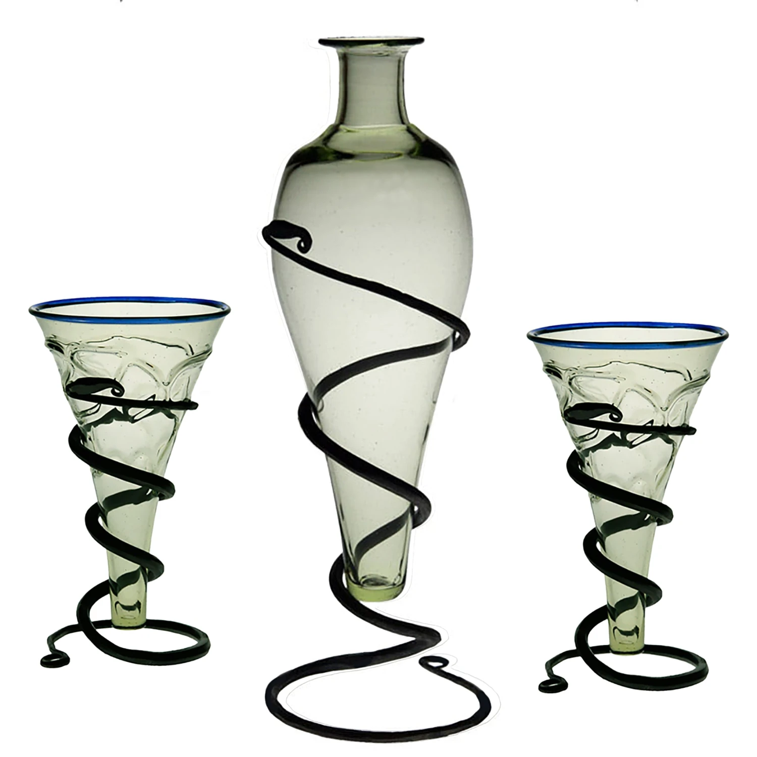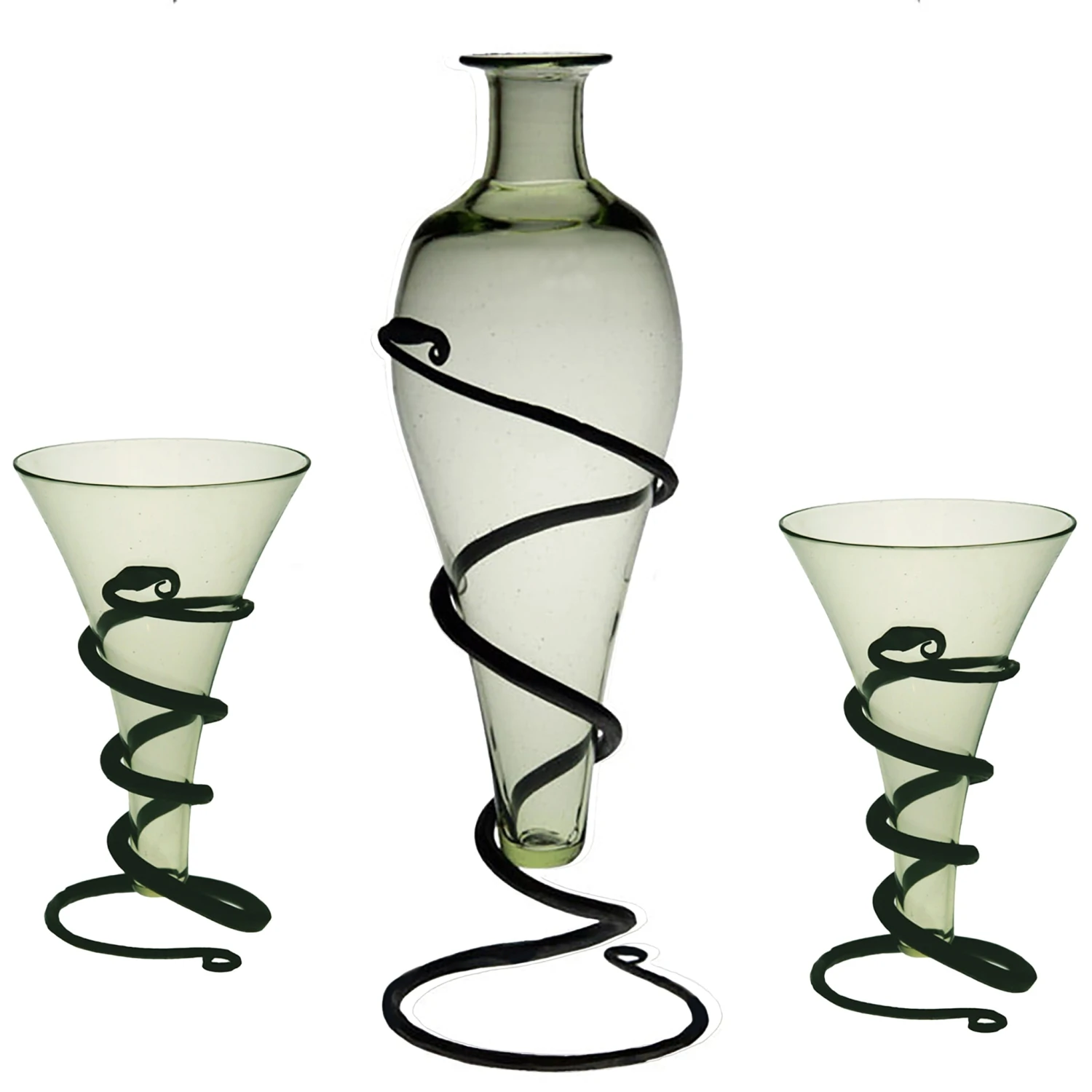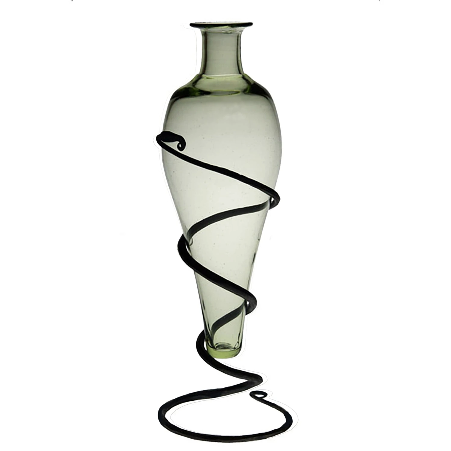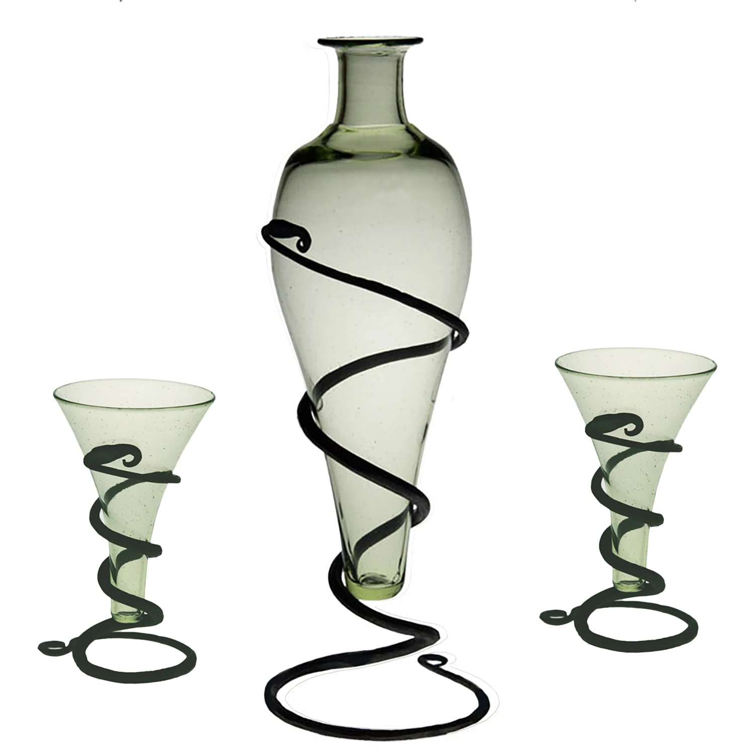 – Handmade green tinted glass and hand-forged iron serpent stand.